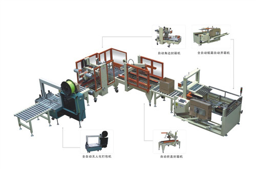 該自動(dòng)包裝流水線是集紙箱自動(dòng)成型、自動(dòng)封箱、自動(dòng)打包為一體。應(yīng)用范圍廣、點(diǎn)地面積小、性能穩(wěn)定、操作簡(jiǎn)單,大大減少勞動(dòng)力,提高生產(chǎn)效率,降低生產(chǎn)成本。為國(guó)內(nèi)數(shù)十家大型知名企業(yè)選用?筛鶕(jù)客戶(hù)不同的包裝需要進(jìn)行個(gè)性化設(shè)計(jì)、制造。